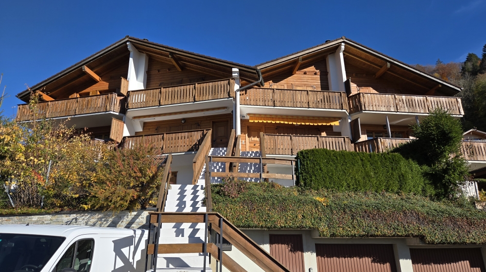 A côté des pistes de ski, ce chalet, par sa position dominante, vous offrira une vue exceptionnelle en toutes saisons sur le village de Charmey. Tout en étant proche des commodités, vous aurez la forêt juste derrière vous. Les infrastructures sportives sont aussi à portée de main. Ce chalet est distribué sur 3 niveaux, chacun offrant terrasse ou balcon. Très aisément, il vous serait possible de transformer le rez-inférieur pour en faire un studio indépendant ou un atelier, avec son entrée privative. Il vous restera au rez-de-chaussée supérieur, un grand salon, la cuisine équipée ainsi qu’une salle de douche/WC. A l’étage, 3 belles chambres à coucher et une salle de bain. Tout ce qu’il faut en fait pour vivre dans le plus grand confort, le week-end, les vacances ou pourquoi pas, à l’année. Quelle que soit votre activité, vous vous retrouverez, le pas de porte franchi, dans un havre de paix. Ces chalets triplex présentent un investissement à vie. Ce chalet est actuellement disponible de suite.